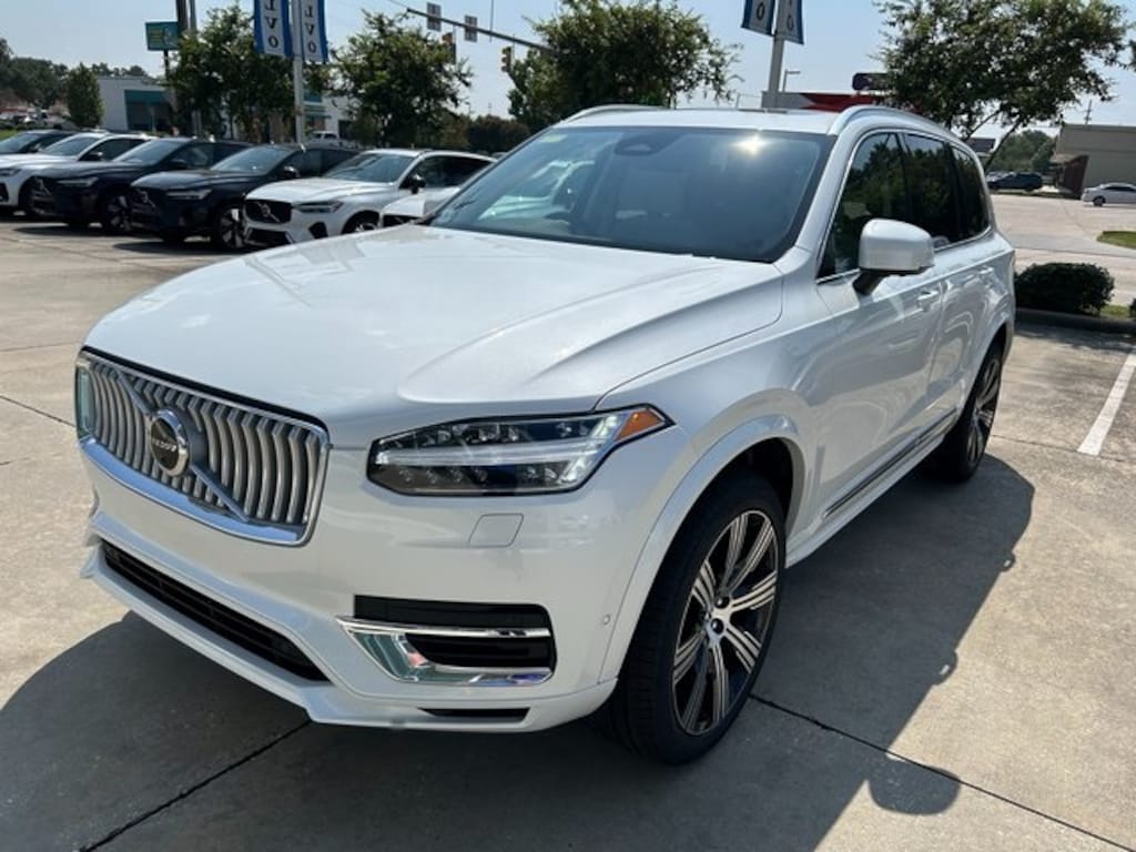 2025 Volvo XC90 Plug-In Hybrid T8 Plus 6 Passenger 4D Sport Utility, 2.0L I4 Hybrid Turbocharged DOHC 16V LEV3-SULEV30, Automatic with Geartronic, Crystal White Metallic, 11 Speakers, Alloy wheels, AM/FM radio: SiriusXM, Apple CarPlay, Auto High-beam Headlights, Automatic temperature control, Emergency communication system: Volvo Cars App w/4 Year Subscription, Exterior Parking Camera Rear, Fully automatic headlights, Garage door transmitter: HomeLink, Genuine wood dashboard insert, Genuine wood door panel insert, Headlight cleaning, Heated door mirrors, Heated Front Bucket Seats, Heated front seats, Heated rear seats, Heated steering wheel, Illuminated entry, Integrated rear child seats, Leather Upholstery, Memory seat, Navigation System, Panic alarm, Power Liftgate, Power moonroof, Radio data system, Radio: High Performance Audio System, Rain sensing wipers, Rear fog lights, Remote keyless entry, Security system, Steering wheel mounted audio controls, Wheels: 20" 5-Multi Spoke Black Diamond Cut Alloy. Factory MSRP: $77,265