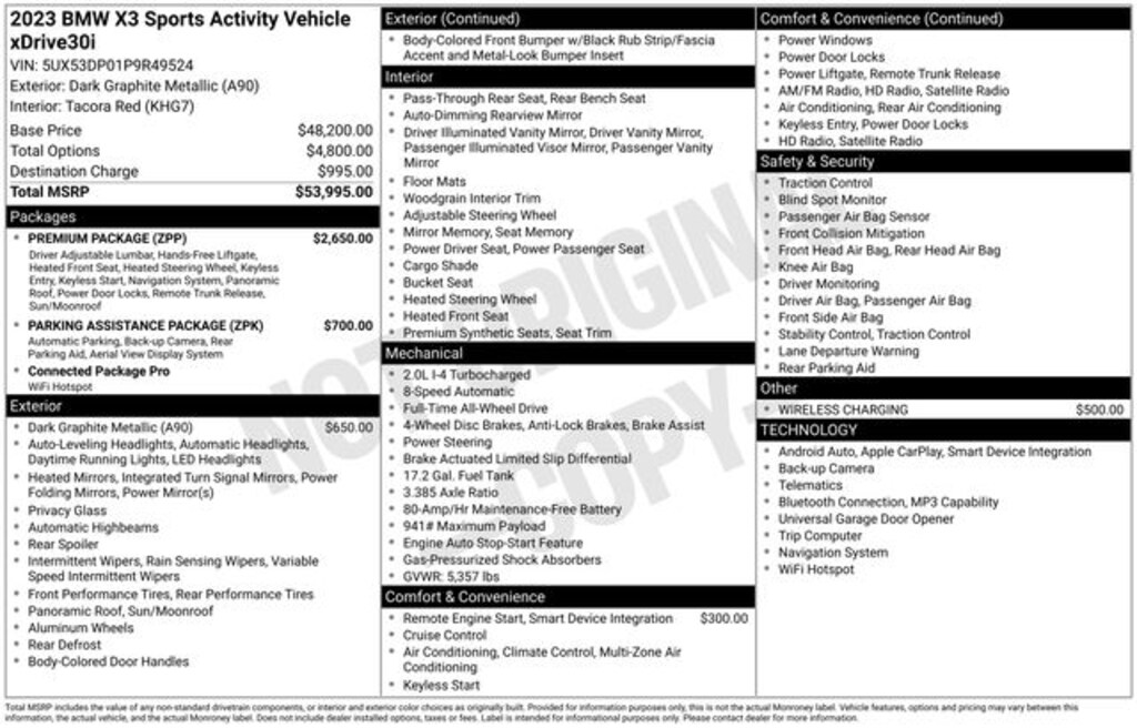 2023 BMW X3 xDrive30i 8-Speed Automatic Sport.