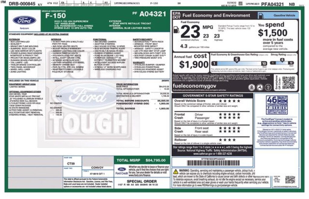2023 Ford F-150 Limited 3.5L PowerBoost Full-Hybrid V6, 4WD.