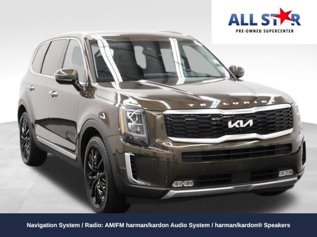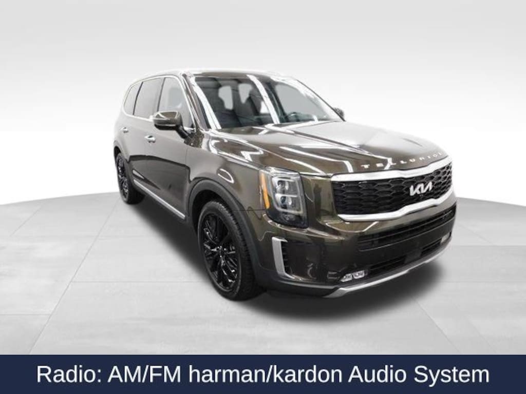2022 Kia Telluride SX 10 Speakers, Alloy wheels, AM/FM radio: SiriusXM, Apple CarPlay & Android Auto, Auto High-beam Headlights, Automatic temperature control, Emergency communication system: 911 Connect, Front fog lights, Fully automatic headlights, Garage door transmitter: HomeLink, harman/kardon® Speakers, Heated & Ventilated Front Bucket Seats, Heated door mirrors, Heated front seats, Heated steering wheel, Illuminated entry, Leather Seat Trim, Leather Shift Knob, Leather steering wheel, Memory seat, Navigation System, Panic alarm, Power Liftgate, Power moonroof, Radio: AM/FM harman/kardon Audio System, Remote keyless entry, Security system, Smart Key w/ Push Button and Remote Start, Steering wheel mounted audio controls, Ventilated front seats, Wheels: 20" x 7.5" Black Alloy.