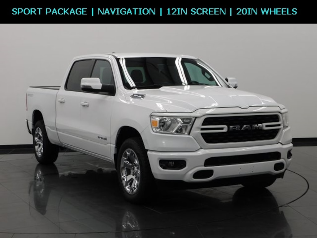 2023 Ram 1500 Big Horn/Lone Star 115V Auxiliary Power Outlet, 12" Touchscreen Display, 2nd Row In Floor Storage Bins, 400W Inverter, 8.4" Touchscreen Display, 9 Amplified Speakers w/Subwoofer, Air Conditioning ATC w/Dual Zone Control, Alloy wheels, Apple CarPlay, Big Horn Level 2 Equipment Group (DISC), Black Interior Accents, Bluetooth Handsfree Phone & Audio, Class IV Receiver Hitch, Cluster 7.0" TFT Color Display, Convex Wide-Angle Exterior Mirror Insert, Disassociated Touchscreen Display, Dual Rear Exhaust w/Bright Tips, Emergency communication system: SiriusXM Guardian, Exterior Mirrors Courtesy Lamps, Exterior Mirrors w/Heating Element, Exterior Mirrors w/Supplemental Signals, Front Fog Lamps, Fully automatic headlights, Google Android Auto, GPS Navigation, Grille Surround 1 Body Color Texture 2 Black, Heated door mirrors, Heated Front Seats, Heated Steering Wheel, Integrated Voice Command w/Bluetooth, LED Footwell Lighting, Media Hub w/2 Charge Only USBs, Panic alarm, ParkSense Front/Rear Park Assist w/Stop, ParkView Rear Back-Up Camera, Power Adjustable Pedals, Power-Folding Mirrors, Quick Order Package 27Z Big Horn, Radio: Uconnect 5 Nav w/12.0" Display, Rear Dome w/On/Off Switch Lamp, Remote Start System, Security Alarm, SiriusXM Satellite Radio, SiriusXM w/360L, Sport Appearance Package, Sun Visors w/Illuminated Vanity Mirrors, Universal Garage Door Opener, Wheels: 20" x 9" Aluminum Chrome Clad (WRK).