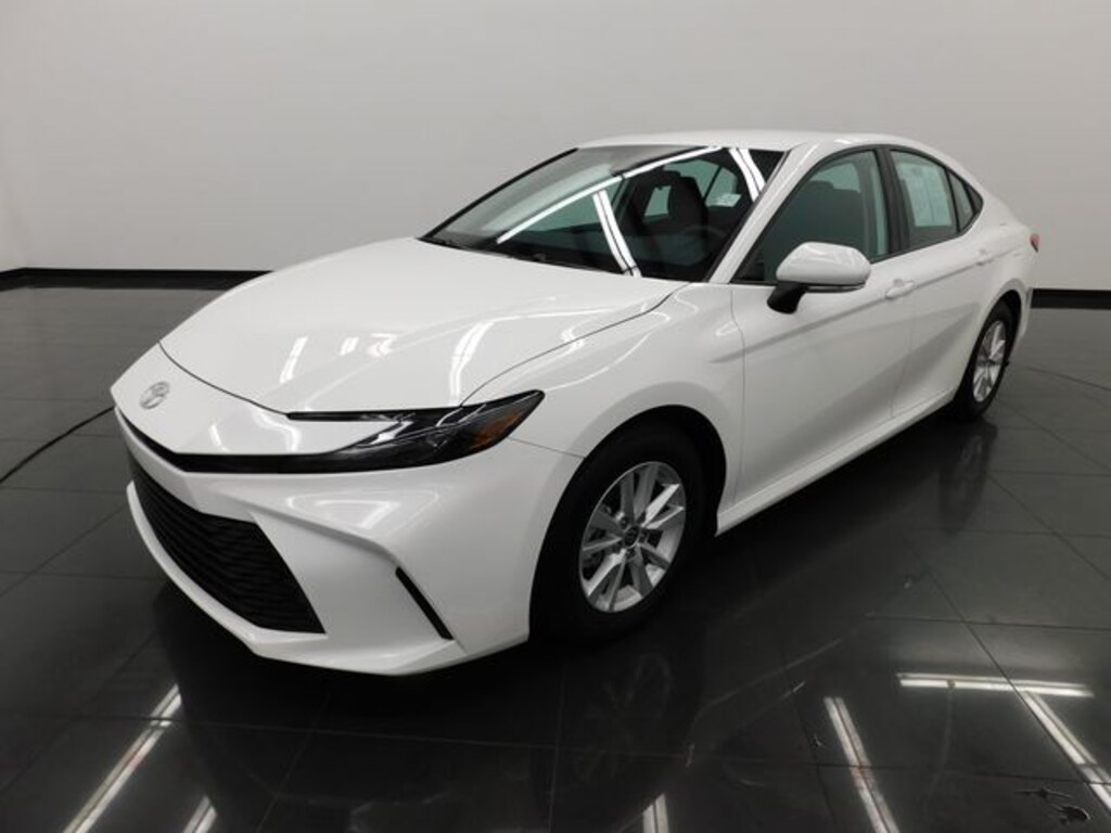 2025 Toyota Camry LE 2.5L 4-Cylinder 16V DOHC, Black w/Fabric Seat Trim, 6 Speakers, Active Cruise Control, Alloy wheels, AM/FM radio: SiriusXM, Apple CarPlay/Android Auto, Auto High-beam Headlights, Emergency communication system: Safety Connect (up to 10-year trial subscription), Exterior Parking Camera Rear, Front dual zone A/C, Fully automatic headlights, Heated door mirrors, Illuminated entry, Panic alarm, Radio: Toyota Audio Multimedia w/8" Touchscreen, Remote keyless entry, Security system, Steering wheel mounted audio controls, Wheels: 16" Silver-Finished Alloy.