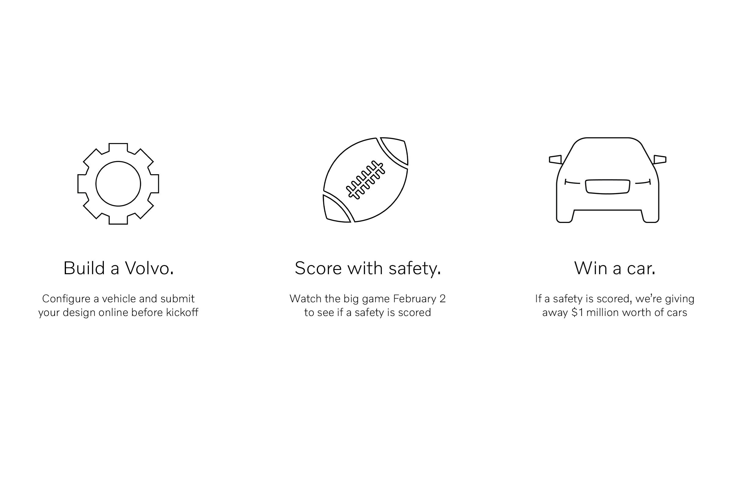After that, watch for a safety on game day, and should one occur, Volvo will award $1 million in cars to randomly selected entrants. Full rules, terms and conditions can be found at volvosafetysunday.com.